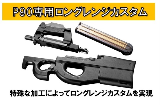 各メーカー問わずP90のモデルはアウターバレルが無い為に、インナーバレルの短くするなどの調整ができませんでしたが、特殊な加工によりロングレンジカスタムの調整を可能にいたしました。