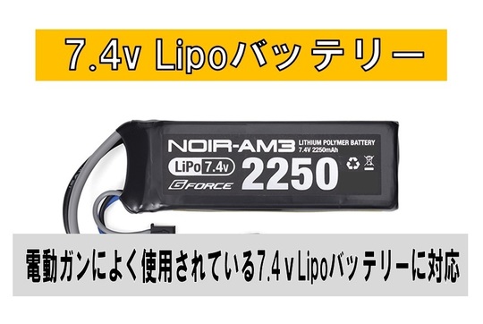 7.4V Lipoバッテリーは、多くの電動ガンに使用が勧められているバッテリーになりますがカスタムの内容によってはバッテリーを変えなければいけなくなりますが、内部の調整によって変更なくLipoバッテリーにで使う事ができるように調整いたします。