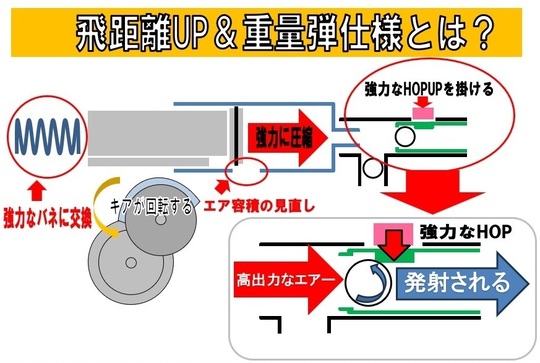これによって、重たいBB弾に強力なHOP UPを掛けて飛ばすことができます。
