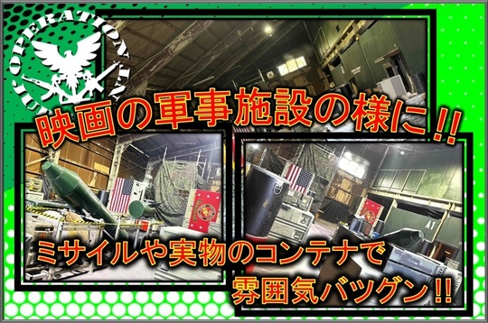 ミサイルも改修され新型にアップグレード! 実物放出品のコンテナやアモ缶を使用しディテールにこだわってリニューアル!! まるで映画の軍事施設に入り込んだような没入感でゲームする事必至!! 皆さん是非、遊びに来てね!!