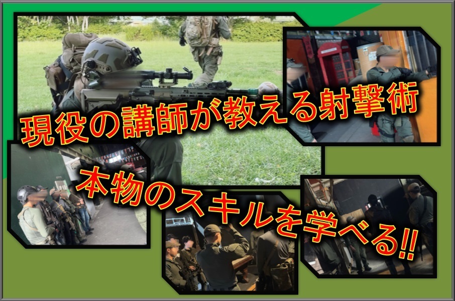 プロの講師が教える基礎根幹を軸に、ミリタリーオペレーションの土台となる射撃術(銃操作)、及び突入の訓練を座学や、訓練にて体験してみよう!